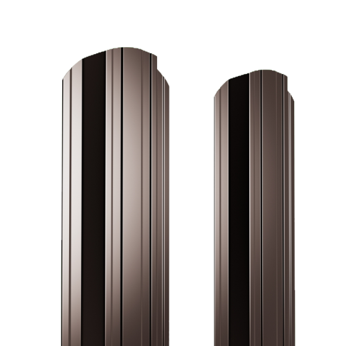 Металлический П-образный штакетник с фигурным краем и двухсторонним покрытием ДВС PE (Двухсторонний Полиэстер) толщиной стали 0,45 мм, цвет RAL8017 Шоколадно-коричневый. Штакетник повышенной прочности, за счет увеличенной толщины стали и нескольких продольных ребер жесткости. Ширина профиля – 125 мм. Лаконичное ограждение со скругленным краем идеально впишется в природный ландшафт. За счет двухстороннего окрашивания забор смотрятся одинаково эстетично как с внутренней стороны участка, так и со стороны улицы. Фигурный срез сглаживает строгость формы. Благодаря выступающей прямоугольной части профиля, ограждение выглядит более объёмно. Штакетник с закругленным краем разной высоты можно использовать для создания интересной формы верха ограждения в виде волны, дуги, пирамиды или другой геометрической формы. Также этот профиль идеален для зонирования гостевых зон и различных площадок внутри участка.